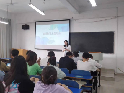 为加强大学生法治教育观念,普及安全防范知识,培养大学生学法、知法、懂法、守法的意识和能力,工商管理学院于2023年4月18日至21日召开法制安全教育主题班会,班会由各班辅导员老师主持。