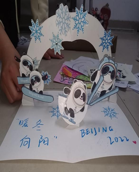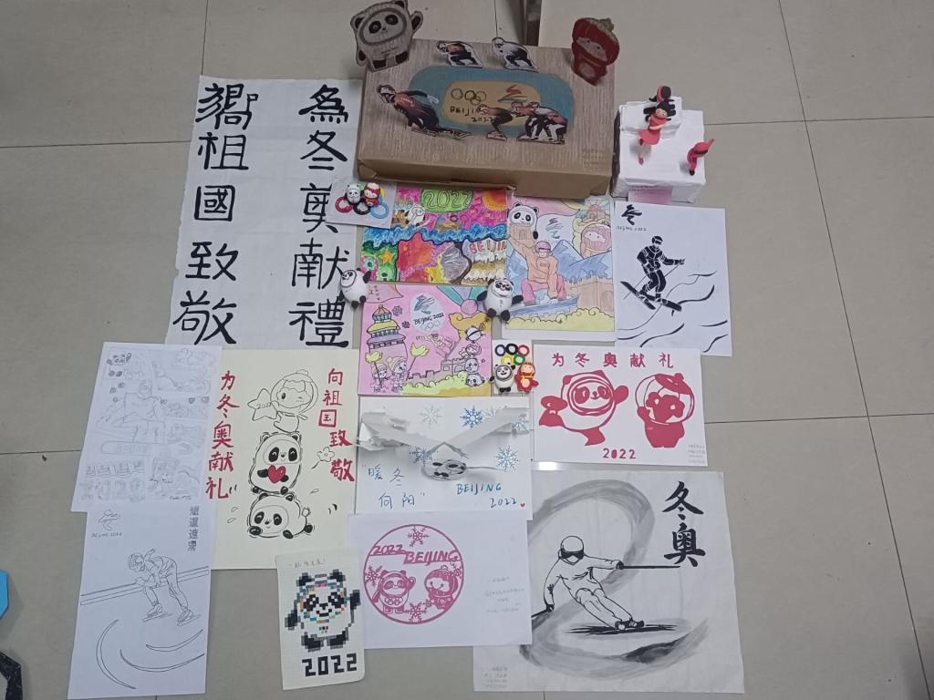 同学们利用简单的工具,制作出有关冬奥会会标、吉祥物、小摆件、字画、剪纸等手工艺品,锻炼了学生们的动手能力和创新能力,用实际行动吹响助力冬奥的号角,普及冬奥知识,传播奥运精神。