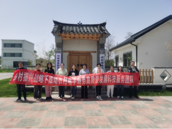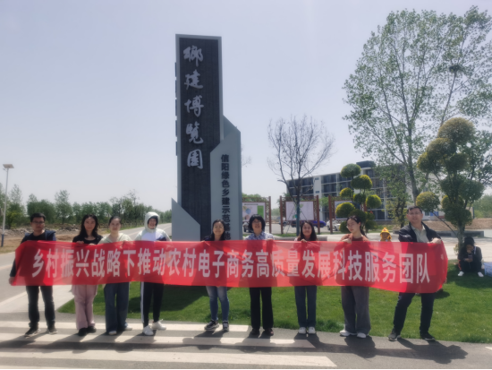 2023年4月15日,beat365在线平台官网“乡村振兴战略下推动农村电商高质量发展”科技服务团队负责人潘瑶与团队成员潘一平、王宇平、刘抗、王振江、马宇轩、李仰光、胡方太盏等赴信阳乡建博览园开展调研和科技服务。