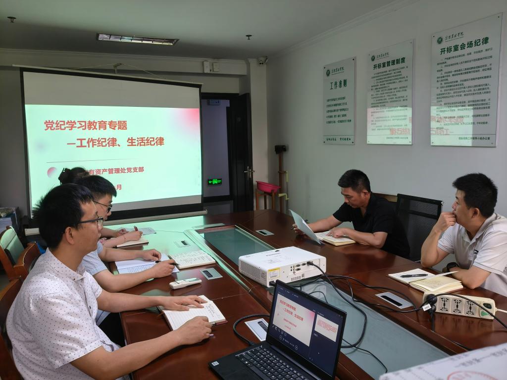 为持续推进党风廉政建设,增强纪律意识、提高党性修养,6月14日,国有资产管理处支部书记张凯支部全体党员讲授党纪学习教育专题党课。