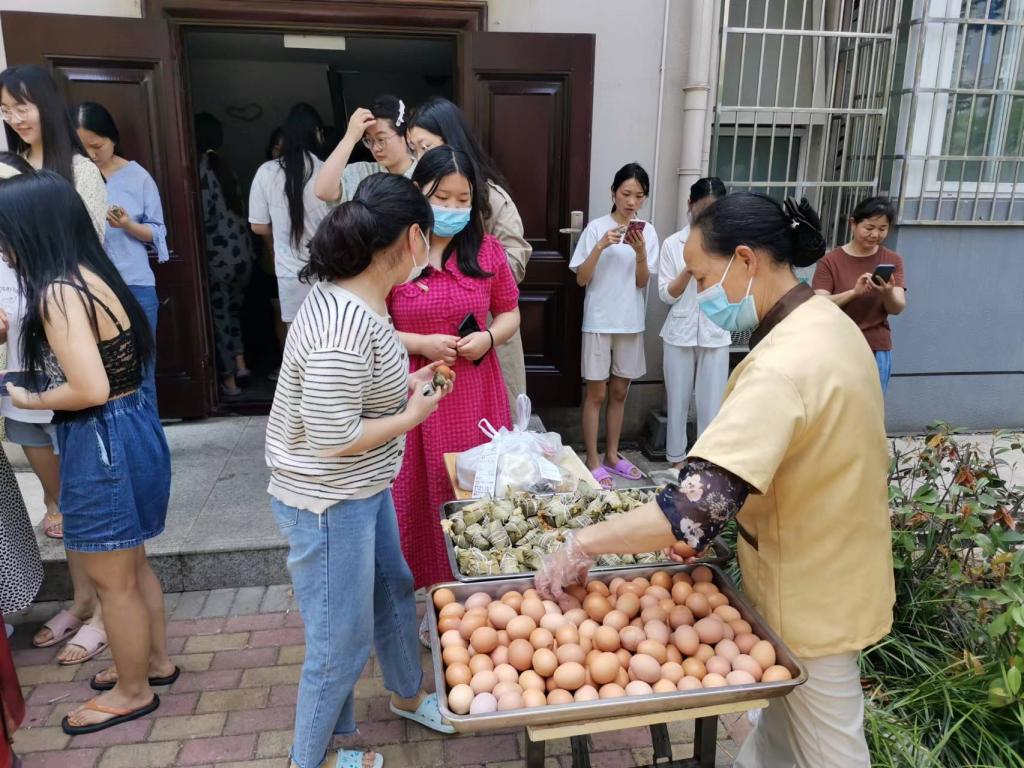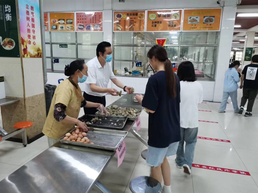 当天中午,后勤管理处(后勤服务总公司)处长(总经理)放弃假期时间,亲自到餐厅为学生们发放粽子和鸡蛋,并与学生亲切的交谈,询问留校学生的生活、学习情况,祝福所有考生金榜题目,随后李巨处长又随工作人员到临时隔离宿舍区为隔离的学生们送上祝福。此次活动中累计共送出粽子2千个,鸡蛋1千个。
