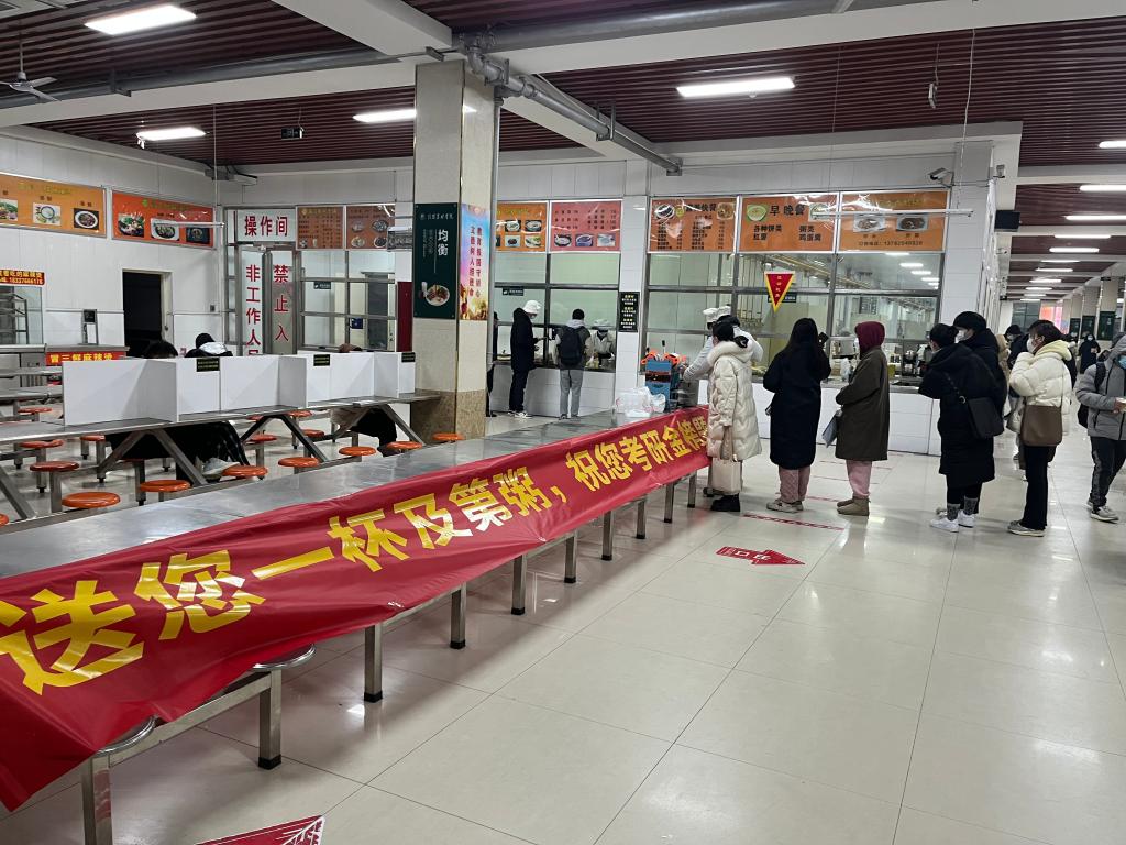在考试前为考生免费发放了中药制剂1200袋,对考研教室进行了周密细致的布置,清理考场卫生,对考场进行了消毒消杀为每个考生免费送4个N95口罩。并为每个考场配备消毒剂、温度计等。在考试当天早上免费为学生送了2000份的及第粥,祝福beat365在线平台官网考研学子金榜题名。