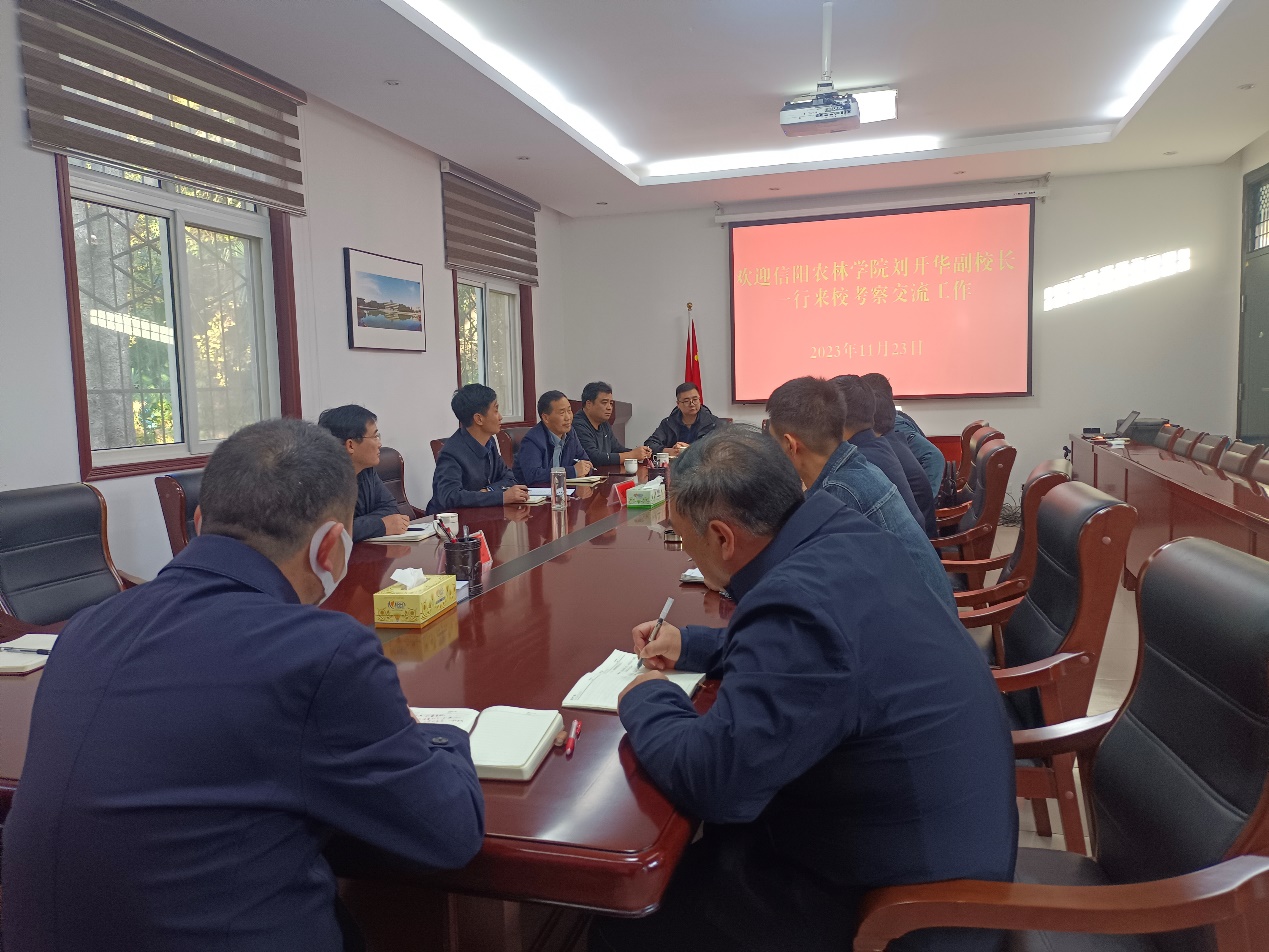 11月23日,副校长刘开华带领后勤管理处(后勤服务中心)一行,赴信阳师范大学考察学生食堂经营模式与餐饮服务方面工作,信阳师范大学副校长江玉安及后勤管理服务中心负责同志参加了交流座谈会。