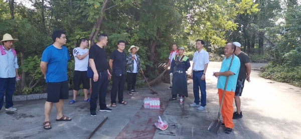 8月15日上午,后勤党总支书记李友国带领分管副处长(副总经理)张宇航、厉相卿一行三人至浉河校区检查创建文明城市环境整治情况。为创建信阳市文明城市,后勤物业管理中心及水电维修中心组织人员已连续多天在浉河校区进行环境整治作业。天气炎热,李书记给大家送去了西瓜、矿泉水等清凉解暑的物资,要求工作人员在注意好防暑降温的同时开展好创文工作。(王道大)