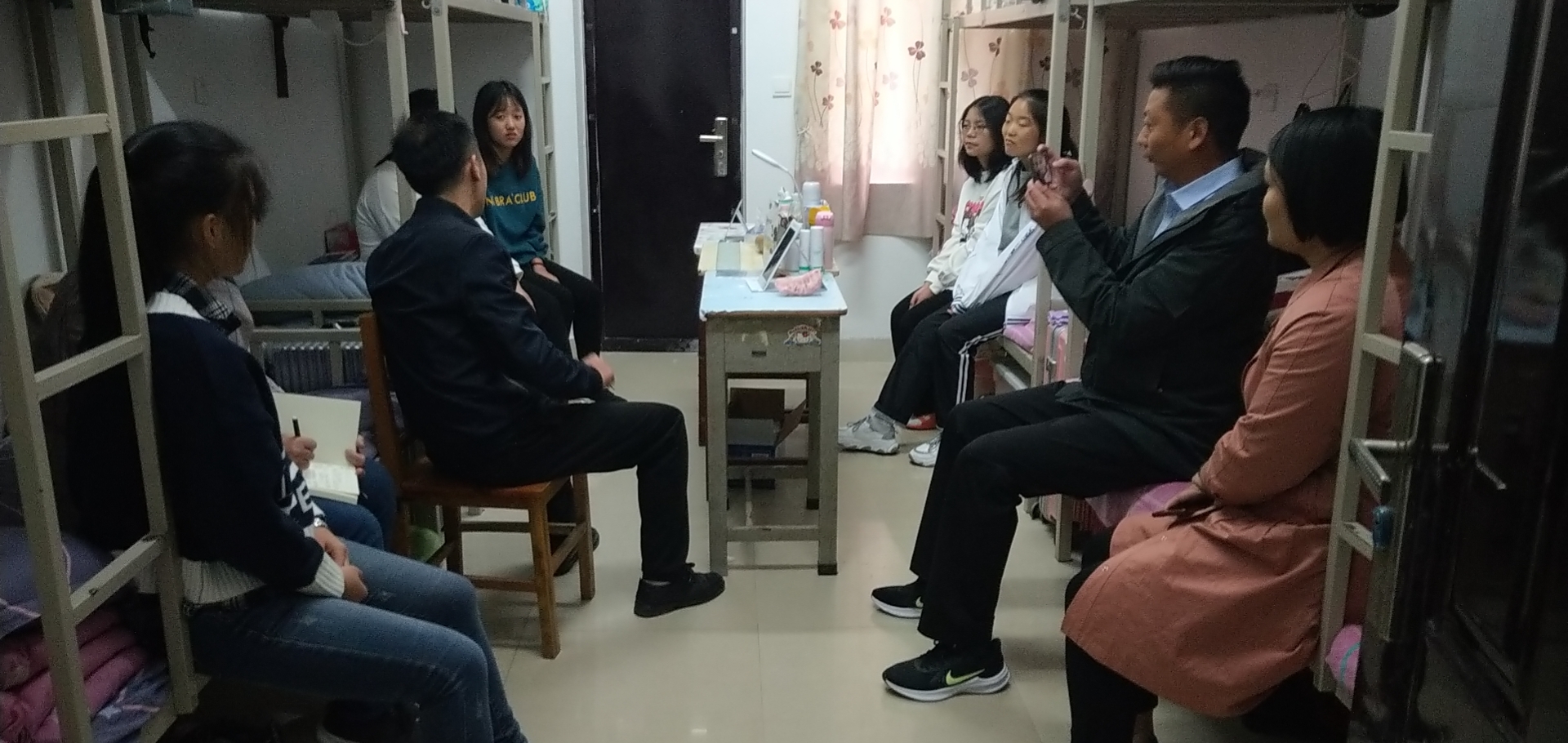 为深入贯彻习近平新时代中国特色社会主义思想,进一步落实学校“三全育人”工作,将服务育人工作做实做细,发挥后勤党员先锋岗党员的先锋模范作用。由后勤公寓服务中心组织,后勤第一党支部的党员先锋岗同志带头开展“后勤党员进宿舍 谈心谈话促服务”活动。
