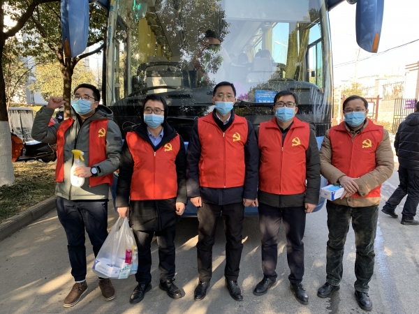 李友国书记亲自为回家心切的学子们发放口罩,并嘱咐同学们回家路上戴好口罩做好个人防护,路上看好自己的行李物品一定要注意安全,祝同学们新年快乐。先锋队的党员们认真仔细的为车辆消毒消杀保障乘车安全,维持上车秩序,为同学们搬运行李。看着同学们乘车离开,部分党员同志们又回到各自的岗位为全校师生做好后勤保障服务。