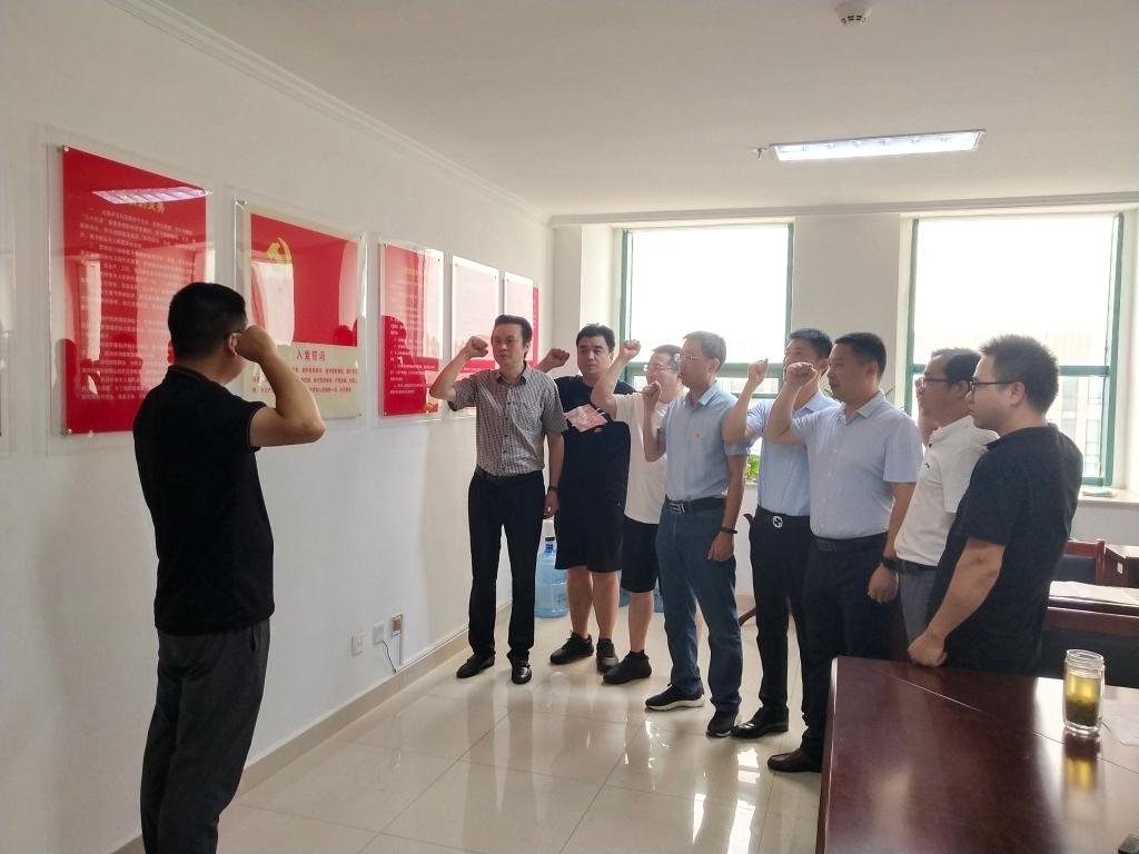 我志愿加入中国共产党……随时准备为党和人民牺牲一切,永不叛党。”党员在后勤第一党支部书记的带领下,面对鲜红的党旗和庄严的誓词,共同高举右拳,庄严宣誓。铿锵有力的宣誓,表达了大家对党的无限忠诚、热爱和听党话、跟党走的坚定决心。