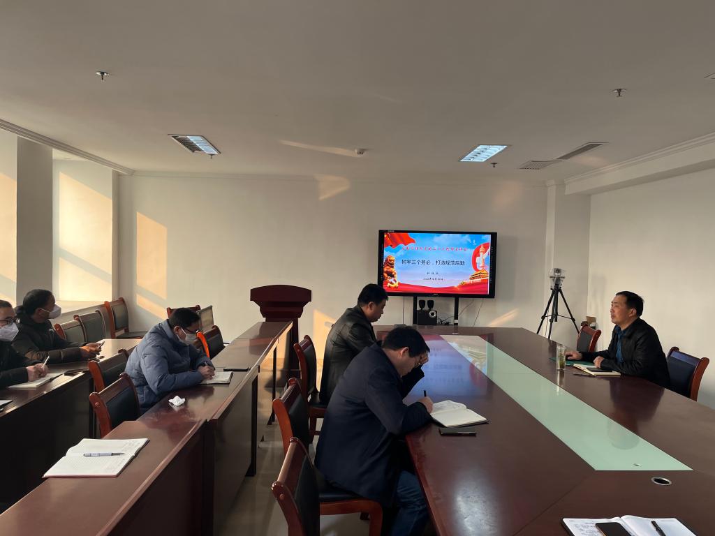 12月26日上午,在综合办公楼807会议室, 后勤管理处处长张祖成以“树牢三个务必,打造规范后勤”为题,为全处党员、科级以上干部做党的二十大精神宣讲。