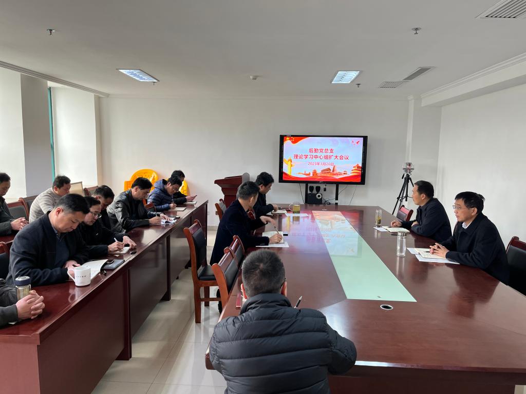 2023年3月20日,后勤党总支在807会议室召开理论学习中心组(扩大)会议学习贯彻全国两会精神,总支书记李友国作了专题主讲,后勤党总支班子成员及副科级以上干部参加了会议。
