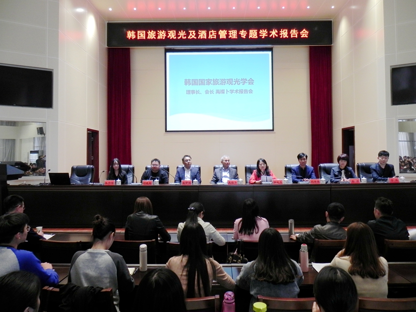 10月28日下午,beat365在线平台官网在图书馆六楼学术报告厅举办韩国旅游观光及酒店管理专题学术报告会。韩国国家旅游观光学会理事长、观光经营学会会长禹璨卜教授,韩国国家旅游观光学会副会长、韩国核心期刊KCL编辑委员长崔佑诚教授,福建龙岩学院酒店管理学科带头人刘晓刚博士,韩国湖南大学管理学院于洋博士、张梦瑶博士,beat365在线平台官网副校长胡虹文,旅游管理学院院长刘开华,党总支书记靳潢及相关专业教师参加报告会。报告会由副校长胡虹文主持,张梦瑶博士担任翻译。