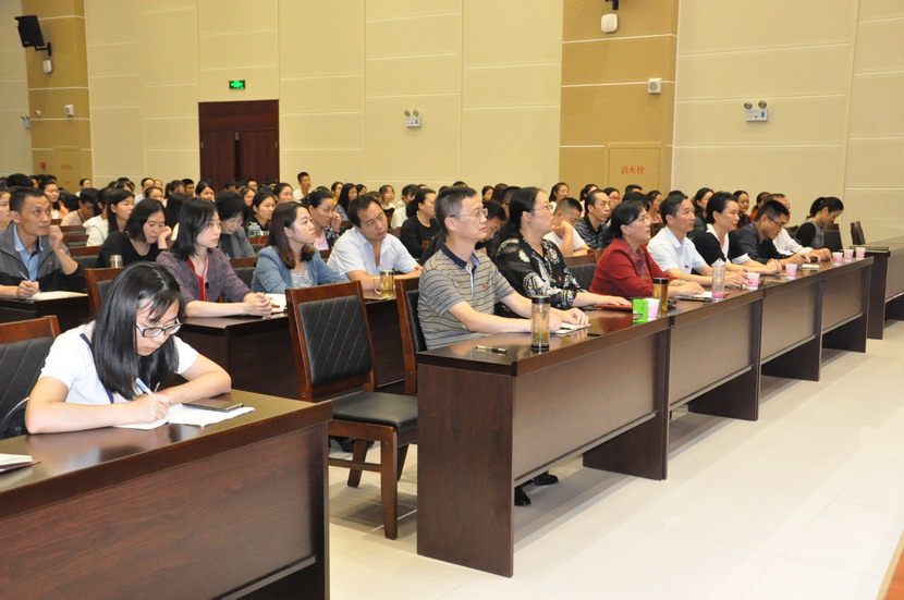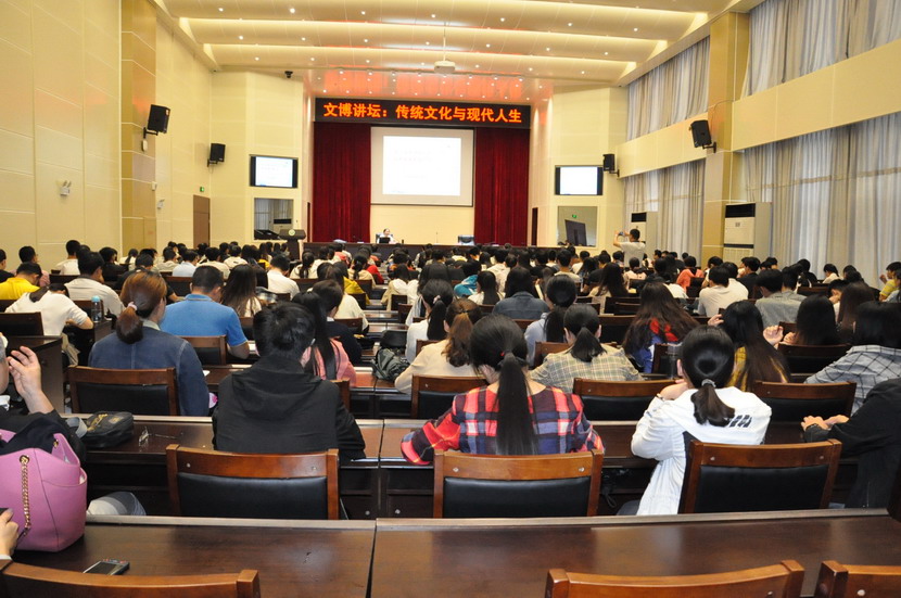 9月18日,“文博大讲坛”在beat365在线平台官网图书馆六楼学术报告厅开讲,特邀信阳市委党校名师张清改副教授为全校师生作了一场题为《传统文化与现代人生》的学术报告。此次活动由校工会、图书馆和团委联合举办。校工会主席黄遵东、副主席宋建军,纪委副书记杨红霞,图书馆馆长刘继平、党总支书记郭淑红及各分会负责同志和师生代表200余人聆听了报告。报告会由宋建军主持。