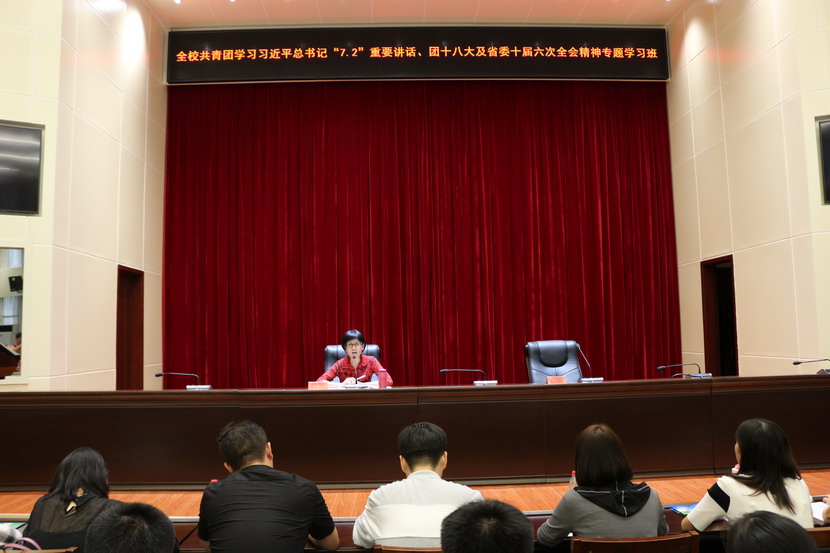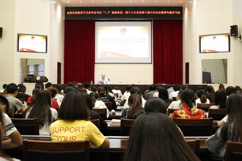 按照团省委统一部署,经学校党委同意,beat365在线平台官网共青团于9月11日—21日,举办了全校共青团学习习近平总书记“7•2”重要讲话、团十八大及省委十届六次全会精神专题学习班。校团委全体成员,各学院团总支书记、副书记、学生团支部书记共300余人参加了学习。此次学习班采用分专题、分时段的灵活方式进行辅导和研讨,既保证了集中学习及研讨时间,又与学校迎新和教学等工作有机穿插结合,取得了良好效果。