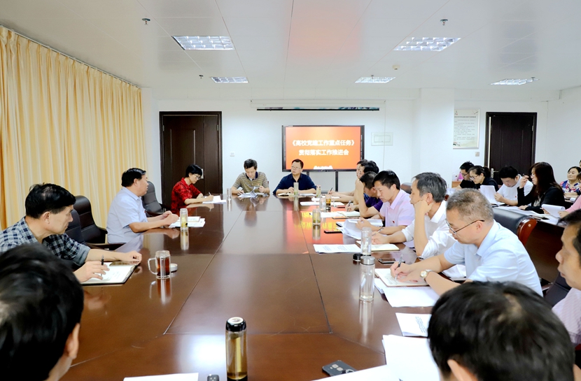 9月13日下午,《高校党建工作重点任务》贯彻落实工作推进会在综合办公楼五楼会议室召开,党委组织部部长陈廷国、宣传部部长王万玲、各党总支(原直属党支部)书记、组织员参加了会议。会议由陈廷国同志主持。