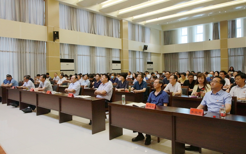 为深入贯彻落实习近平总书记对党史学习教育作出的重要指示精神,推动党史学习教育全面深入开展,6月25日,beat365在线平台官网在图书馆六楼报告厅举办党史学习教育专题读书班第二次集体学习会。会议邀请中共河南省委党史研究室《党史博览》杂志社社长、总编秦相启作党史学习教育专题报告。党委书记余作斌、校长邢勇和在校的班子成员及全体中层干部参加学习。会议由党委副书记王庆兵主持。