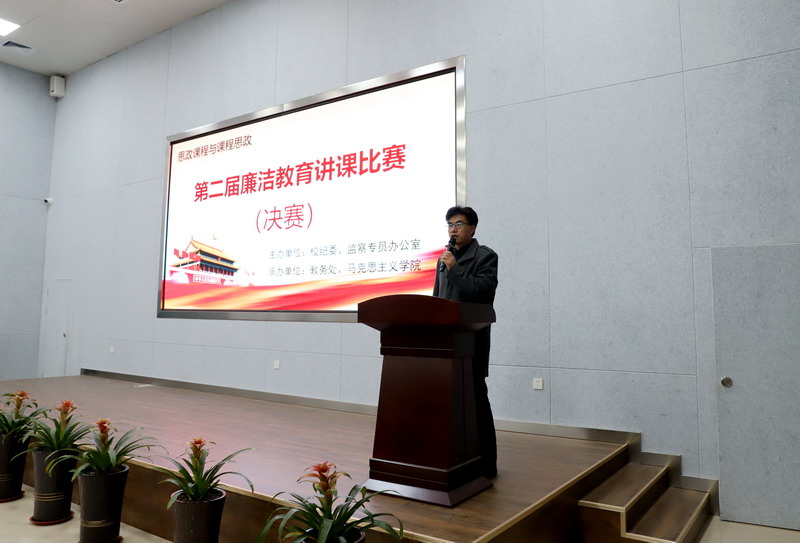 赛后,赵一鹏作现场点评。他指出,教师是教学的主力军,课堂是育人的主阵地,以“清”育美德,用“廉”润心田,让廉政教育进课堂,是廉洁校园建设的抓手,也是铸魂育人的保障。他要求,广大教师要通过课程思政推动廉政教育,在润物细无声中教育学生增强廉洁意识,守住法律底线,懂得真善美,辨别假丑恶,养成遵纪守法、崇廉尚洁的好习惯,引导学生清白做人,诚信做事,树立正确三观,不负青春韶华。