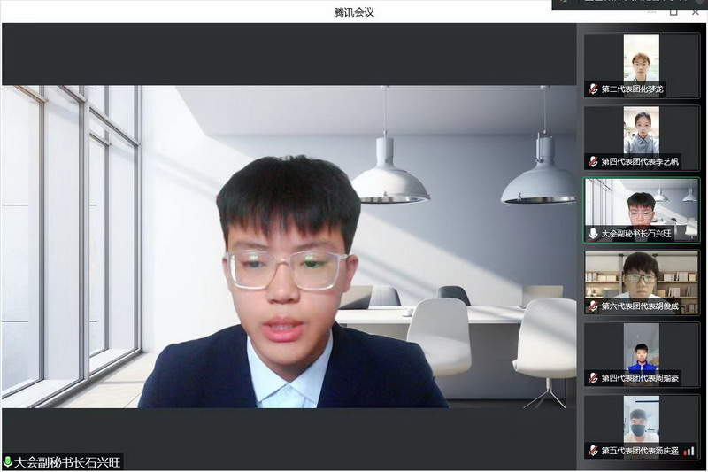 6月11日上午,大会开幕会召开。校党委学生工作部部长、学生处处长简频捷,校团委书记王鹏,各学院团总支书记及162名代表通过视频会议在线参加了此次会议。