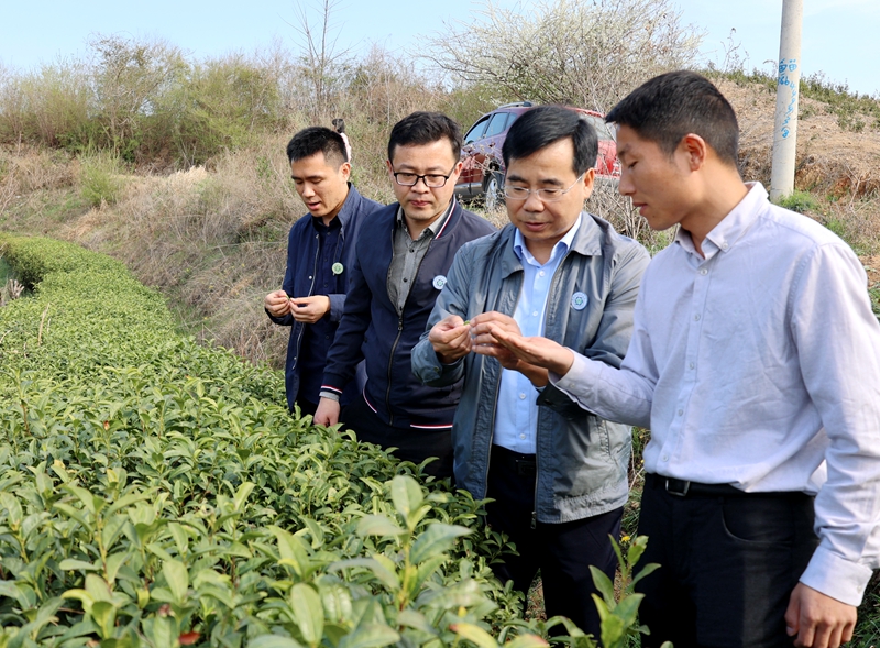 今年入春以来,雨水稀少,连续多日高温使得茶园旱情初显。3月11日,信阳市茶产业科技特派员服务团史洪中、王广铭、郭世保、王子浩、尹鹏等成员,前往浉河港黄庙生态茶厂等企业,调研春茶生产准备工作情况,开展科技服务,进行技术支持。