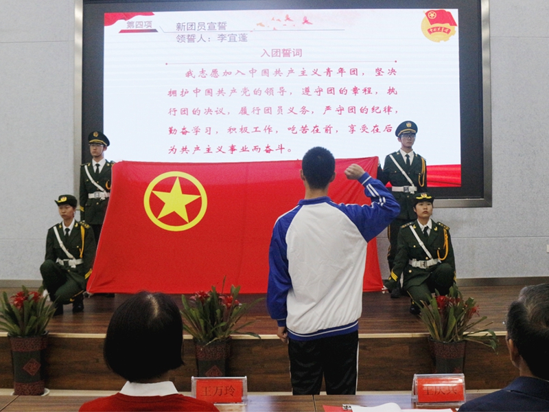 在新团员入团宣誓仪式中,本年度发展的80名新团员面向团旗光荣宣誓。食品学院团总支书记易蕾宣读了《中国共产主义青年团章程》中关于团员权利和义务的条款。财经学院贾韩磊和园艺学院白若芸同学分别代表新、老团员发言。