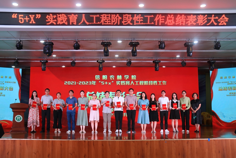 简频捷宣读了对2021-2023年“5+x”实践育人工程阶段性工作先进个人标兵、优秀朋辈导师、优秀指导教师标兵及工作先进单位标兵的表彰决定。与会领导分别为受表彰的单位和个人颁发了证书和奖牌。茶学院王斯璇同学、食品学院黄冰钰同学、财经学院荣翊贝老师及动物科技学院尹磊老师作为优秀典型代表作了发言。