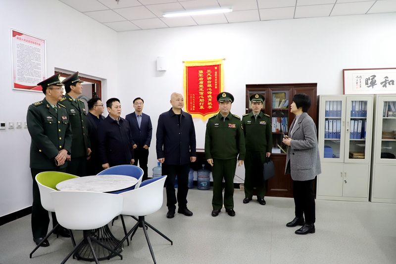 曹健代表学校对李选才司令员一行的到来表示欢迎,并对信阳军分区长期以来在学校的国防教育、学生军训、征兵入伍和军校共建等工作给予的关心和支持表示诚挚感谢。她指出,学校一直高度重视武装工作,严格贯彻落实省军区和市委市政府、信阳军分区的相关要求,把国防教育、征兵工作、军事课教学纳入学校发展规划。今后,将进一步加强党管武装工作,完善国防教育教学体系,打造优化学生“参军入伍-退伍复学”服务平台,逐步构建“多位一体、多措并举、责任明确、齐抓共管”的长效机制,不断探索和创新预征预储的新模式,在保证完成目标任务的同时,大力提升毕业生征集比例和兵员质量,为强军兴军输送更多优秀人才,为国防事业做出更大贡献。