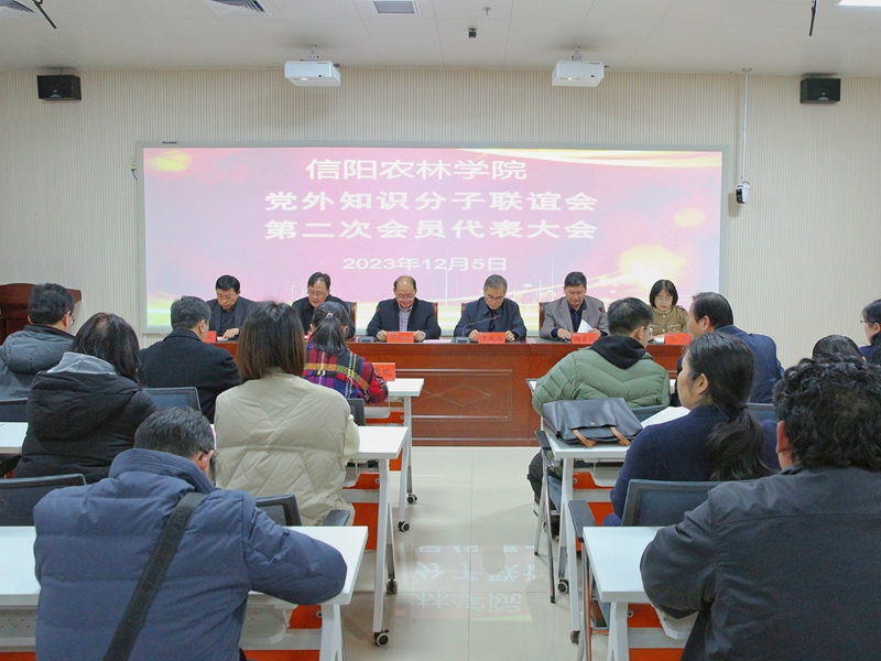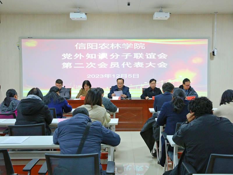 12月5日,beat365在线平台官网在学术交流中心一楼会议室召开党外知识分子联谊会(以下简称“校知联会”)第二次会员代表大会。信阳市政协副主席、市党外知识分子联谊会会长周保林,校党委副书记、工会主席王庆兵,校党委委员、组织部部长何涛,党委统战部部长杨东辉,校知联会会员参加会议。会议第一阶段由校党委统战部副部长杨林主持,第二阶段由杨东辉主持。