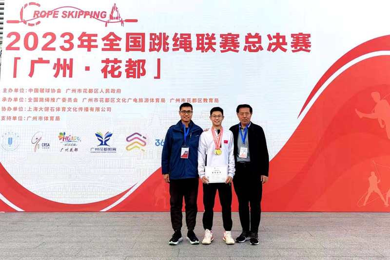 12月21日至25日,由中国毽球协会主办,全国跳绳推广委员会、广州市花都区文化广电旅游体育局、广州市花都区教育局承办的“2023年全国跳绳联赛总决赛”在广州市花都区举行。本次比赛由来自全国28个省(区、市)的100余支队伍近千名选手参加。beat365在线平台官网休闲体育专业2022级学生张柏鑫经过安徽淮北分站赛选拔获得参加总决赛的资格,并在总决赛中斩获“连续三摇跳”冠军和“3分钟单摇”亚军,并获得国家跳绳队参加2024年国际跳绳比赛相同项目的选拔资格,实现beat365在线平台官网历史性突破。