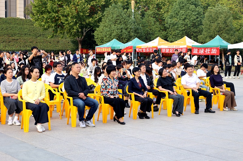 活动现场,思想政治类、学术科技类、文化艺术类、志愿公益类、创新创业类等五类共64个学生社团各展风采,通过多种方式开展纳新。节目展演精彩纷呈,吉他社团的《鼓楼》《我记得》《少年锦时》迅速点燃了现场的热烈氛围;舞蹈社团的《幻想童话》青春活力四溢,在动感的节拍中,展现现代舞蹈的魅力与力量;春雨茶社社团的《书简》以优美的舞姿演绎出一幅动人心魄的绝美画卷;大学生艺术团的《找自己》、演讲与口才社团的朗诵《青春扬帆正当时,争做时代追梦人》等众多节目充分展现了各社团的独特魅力与文化底蕴。最后,器乐社团的乐队歌曲串烧将现场氛围推向高潮。