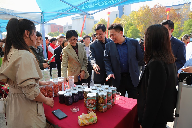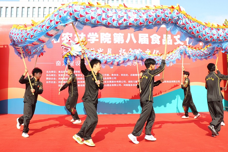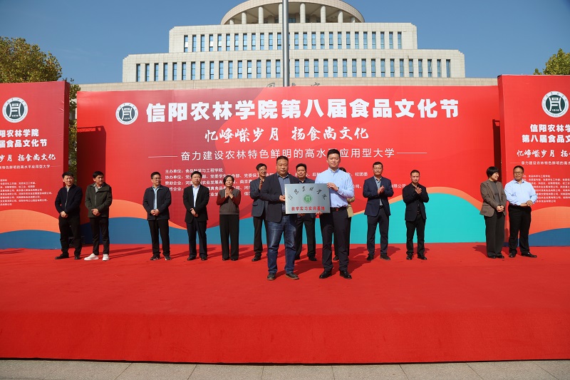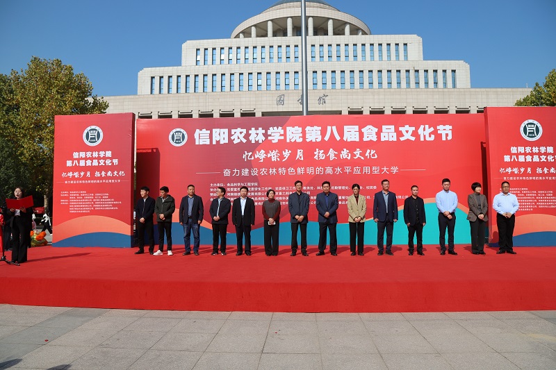 11月8日,以“忆峥嵘岁月、扬食尚文化”为主题的beat365在线平台官网第八届食品文化节在汝宁广场开幕。信阳市工信局原局长、二级巡视员、信阳菜文化研究与产业发展促进会副会长张春茗,信阳市信阳菜餐饮行业协会秘书长、信阳茶宴主题酒店总经理、中国注册烹饪大师李宏群,信阳市食品安全协会会长刘礼伟,河南锦绣农业发展有限公司董事长邱建,校党委书记黄松,党委副书记、工会主席王万玲,党委委员、副校长易军鹏,beat365在线平台官网相关职能部门负责同志、食品科学与工程学院全体师生、校企合作单位代表、部分学院师生代表参加了开幕式。开幕式由食品科学与工程学院院长李建芳主持。