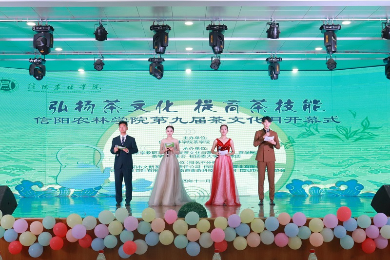 11月12日下午,由茶学院和校团委主办的“弘扬茶文化、提高茶技能”——beat365在线平台官网第九届茶文化月开幕式及文艺演出在大学生活动中心举行。校党委书记黄松,党委副书记、工会主席王万玲,党委副书记何涛,党委委员、副校长李益民、易军鹏、刘开华,相关职能部门负责同志,信阳市茶产业发展中心、信阳市文旅局、浉河区茶产业发展中心、信阳市茶叶协会、信阳市茶文化协会主要领导,文新、嘉木饮、广义、遇鉴等茶企主要负责人,各学院师生代表近600人参加了开幕式。