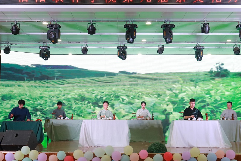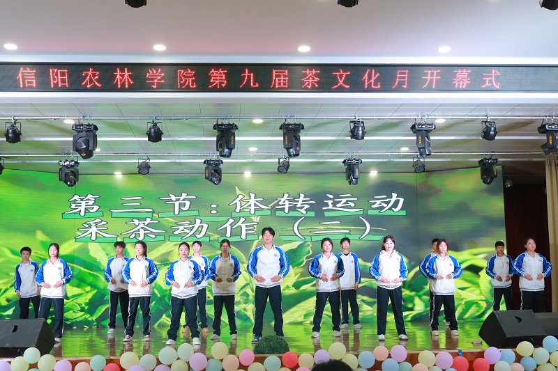 在文艺演出中,参演师生用青春洋溢的歌舞和茶技能展示为到场来宾和观众奉上了一场视听享受:将采茶、制茶、品茶动作和体育运动相结合的原创“茶文化健身操”、源远流长的长嘴壶茶艺表演“长壶飞扬”、茶舞“采茶舞曲”“寻茶”等节目不仅是对茶文化传承与创新的一次生动实践,同时也表达出茶学院师生践行“三茶”统筹理念,弘扬茶文化、提高茶技能,不断发掘蕴含于茶专业中的“五育并举”元素,培养德才兼备、专技结合的应用型茶产业人才的决心和信心。