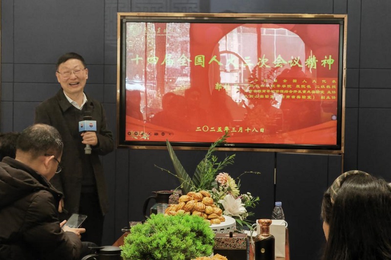 郭桂义代表的宣讲以“接地气”的语言和生动案例,赢得了茶农、基层群众和师生们的广泛共鸣。他不仅传递了政策方向,作为茶界科研人员、高校教育工作者,他还将专业建设与地方发展需求相结合,为老区振兴发展注入了新动力。(撰稿/茶学院 丁岚 摄影/茶学院供图)