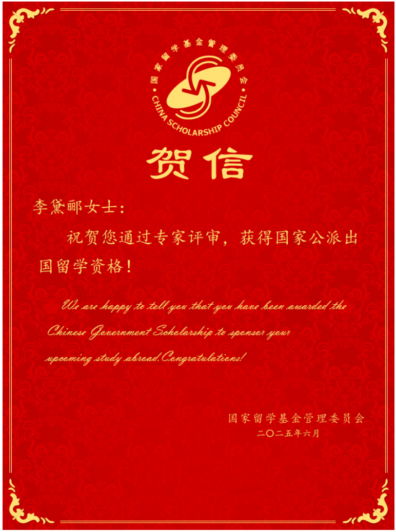 李黛郦老师此次成功获得国家公派留学资格,不仅是个人的荣誉,更是beat365在线平台官网教师荣获国家留学基金委公派留学攻读博士研究生第一人,是学校国际交流合作工作在国际化人才培养方面取得的一次重要突破,将激励全校师生继续努力,不断提升科研水平和国际竞争力,为学校高质量发展和教育对外开放贡献更多智慧和力量。(撰稿/国际交流与合作中心 徐翔)