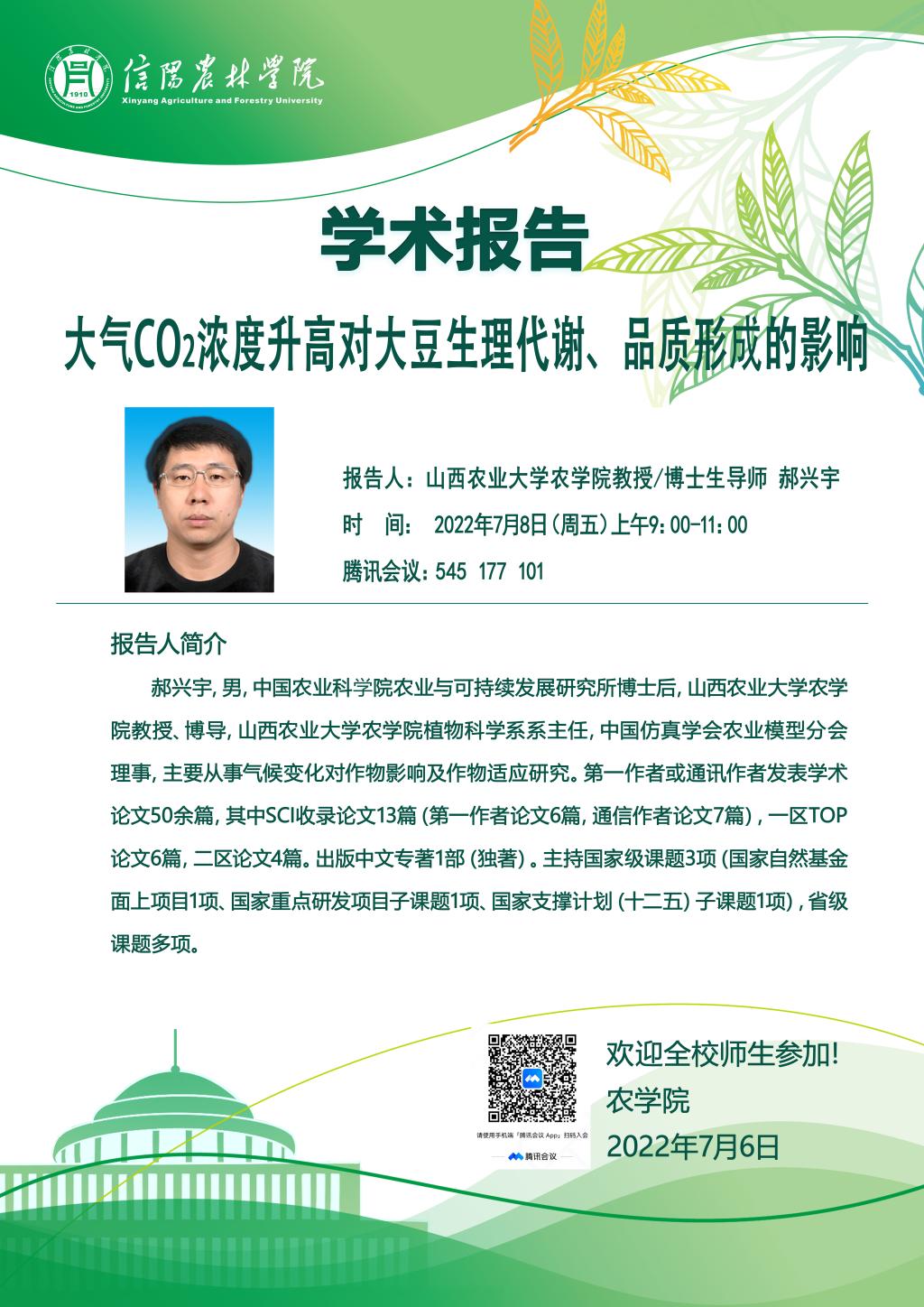 学术报告——大气CO2浓度升高对大豆生理代谢、品质形成的影响