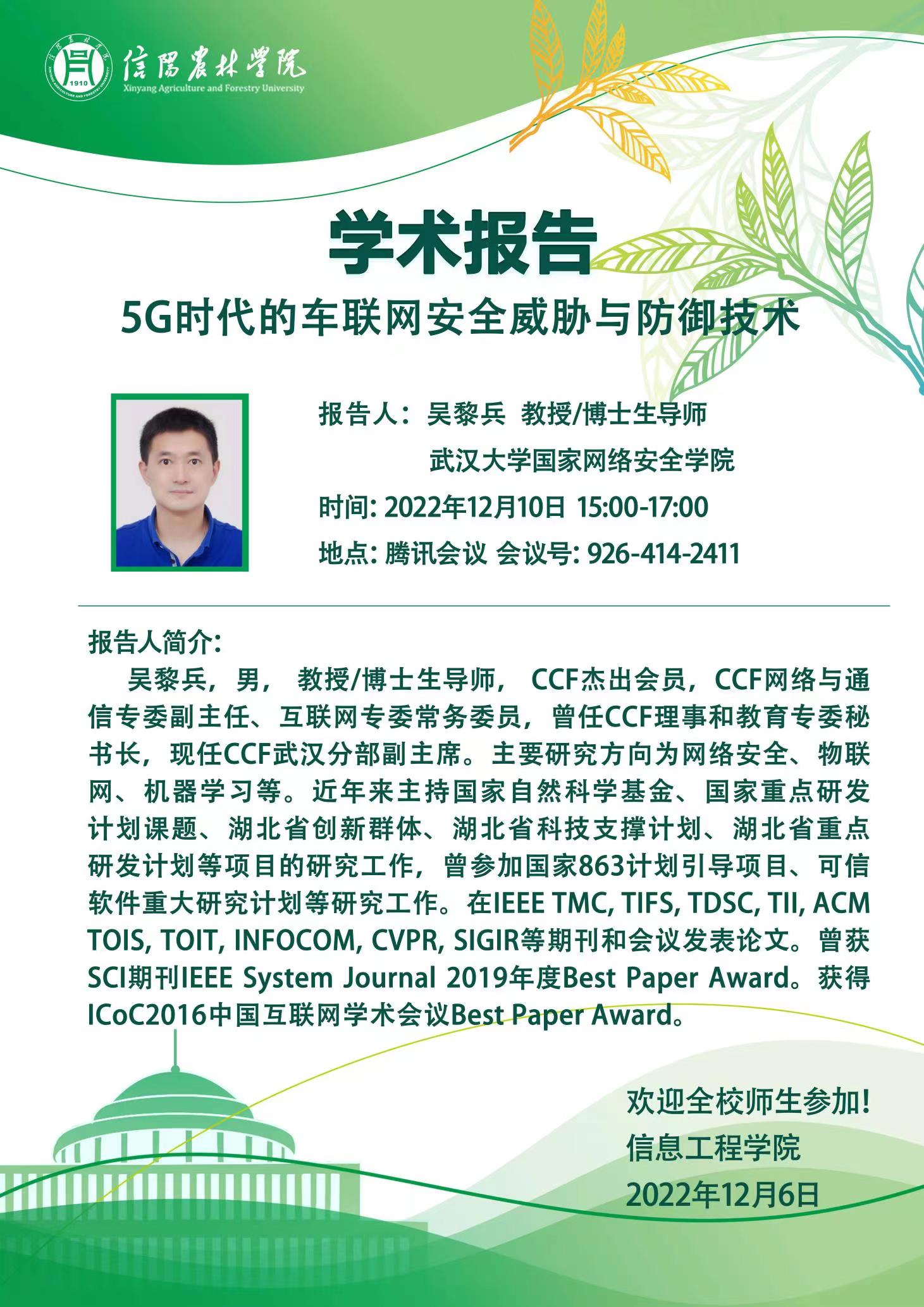 学术报告——5G时代的车联网安全威胁与防御技术