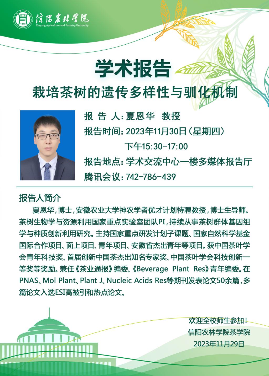学术报告——栽培茶树的遗传多样性与驯化机制
