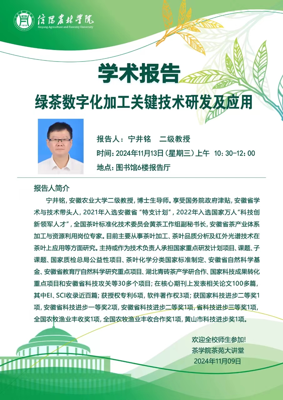 学术报告——绿茶数字化加工关键技术研发及应用