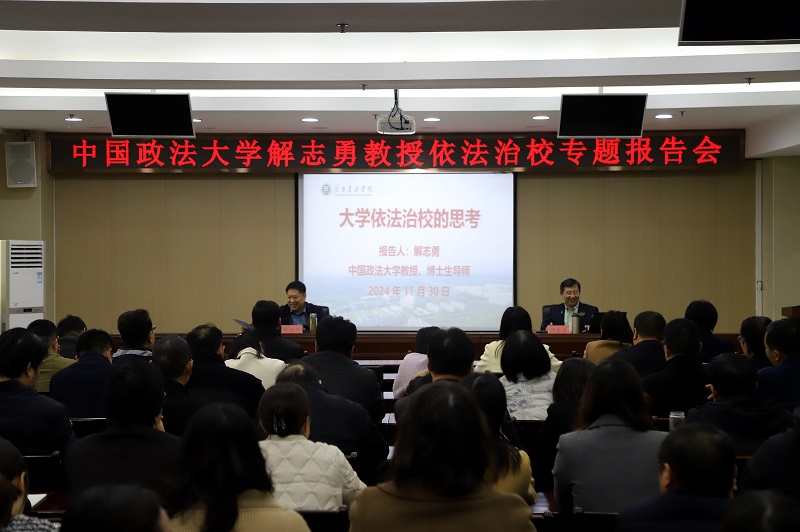 11月30日下午,中国政法大学比较法学研究院院长、博士生导师解志勇教授应邀来校,作了题为《大学依法治校的思考》专题报告。报告会由党委委员、副校长张光辉主持,职能部门中层干部,各学院党总支书记、院长参加。
