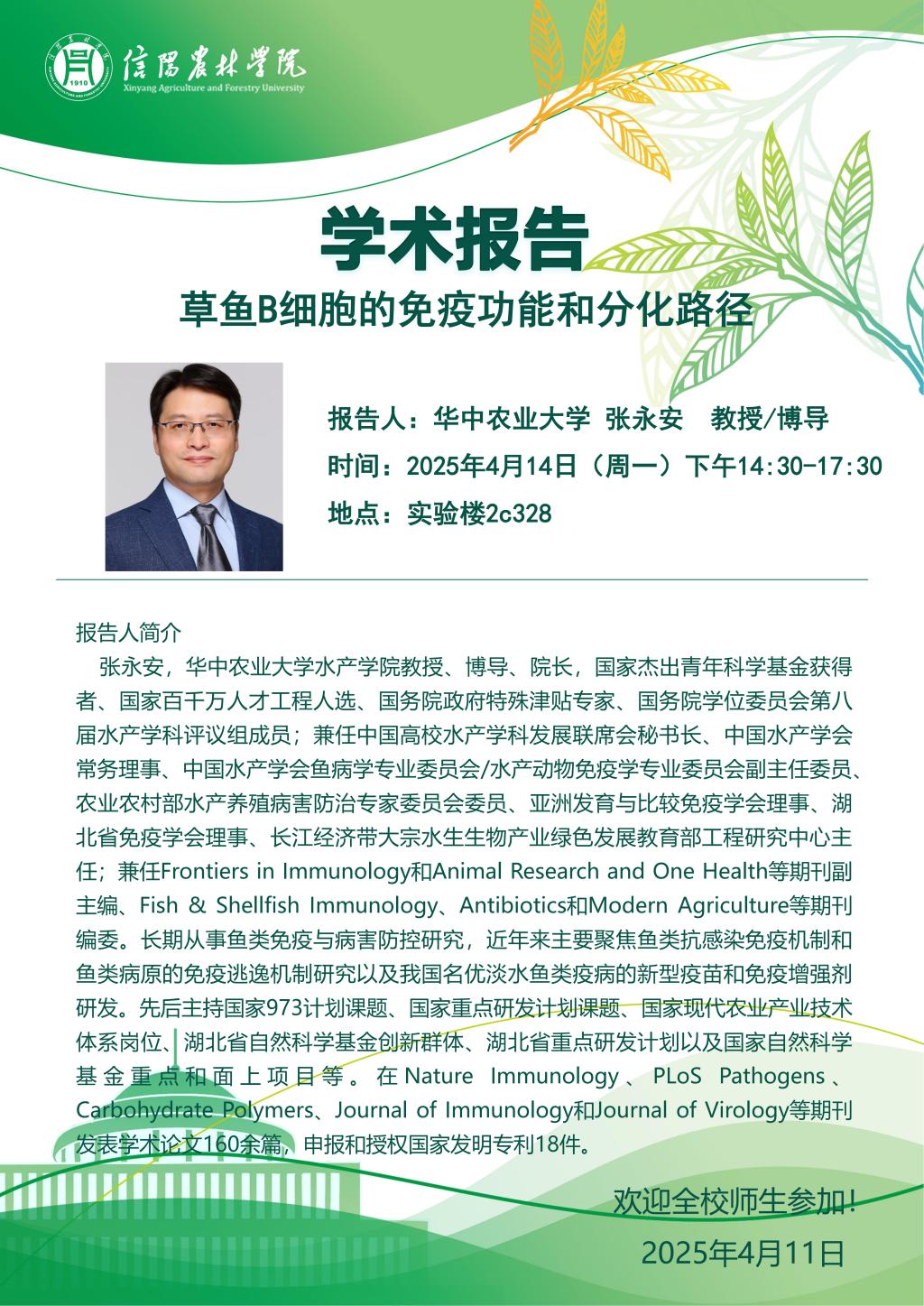 学术报告——草鱼B细胞的免疫功能和分化路径
