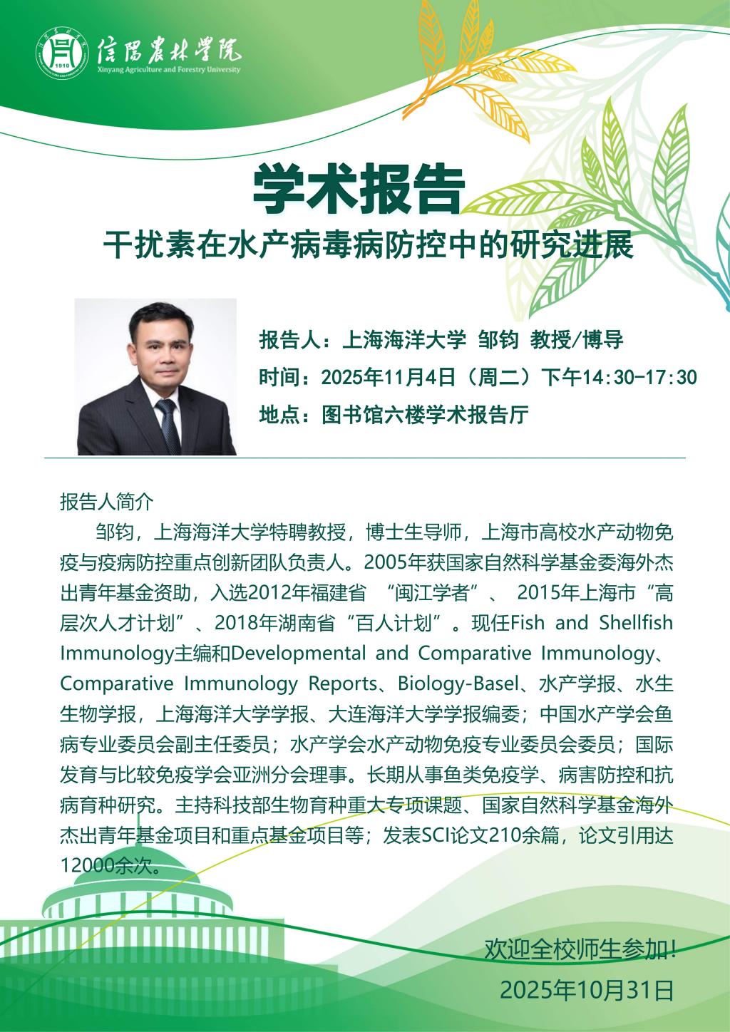 学术报告——干扰素在水产病毒病防控中的研究进展