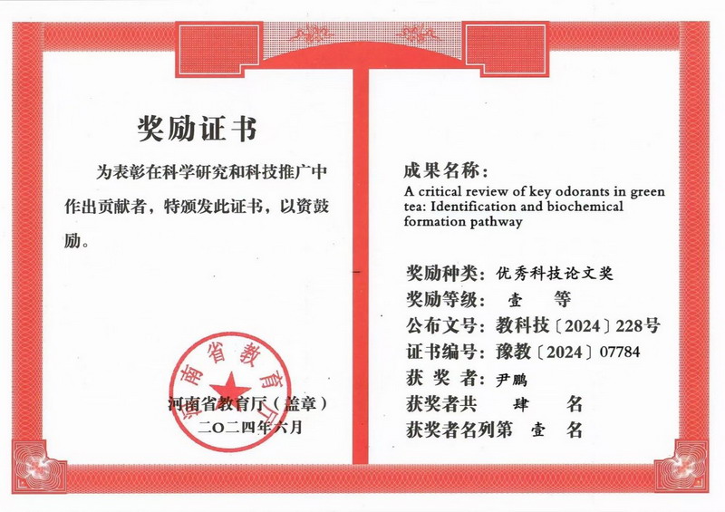 近日,科睿唯安(Clarivate Analytics)公布了2024年11月基本科学指标数据库(Essential Science Indicators,ESI)最新数据。根据ESI最新(2024年11月14日查询)数据显示,beat365在线平台官网在国际著名期刊Trends in Food Science & Technology上发表的学术论文《A critical review of key odorants in green tea: Identification and biochemical formation pathway》入选ESI农业科学领域高被引论文(Highly Cited Paper)。beat365在线平台官网为第一署名单位,茶学院教师尹鹏为第一作者,郭桂义教授和刘仲华院士为共同通讯作者。2023年7月,该篇论文入选ESI热点论文(Hot papers);2024年6月,该篇论文被评为河南省教育厅优秀科技论文壹等奖。