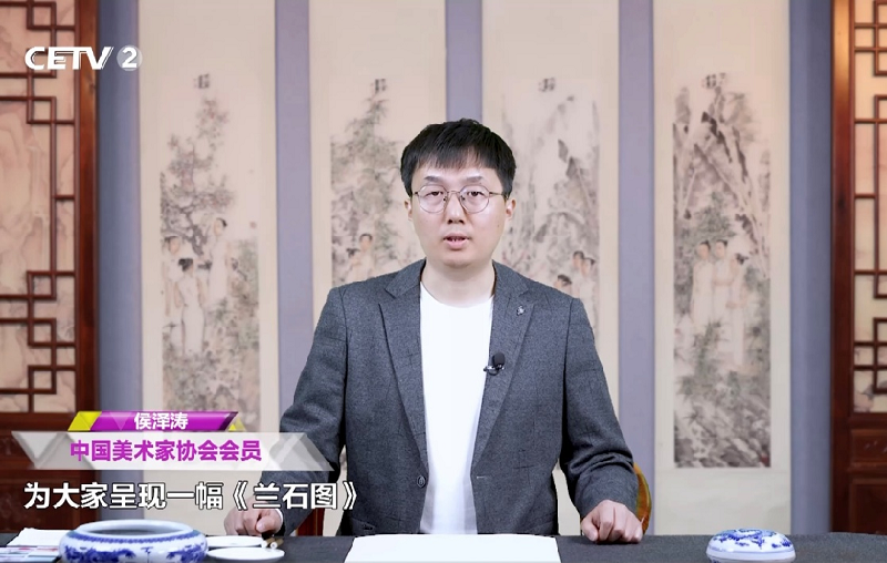 侯泽涛老师以扎实的专业知识、丰富的创作经验以及独特的艺术视角进行现场创作,对作品进行细致入微的讲解,让观众清晰了解书画创作的步骤、技巧,以及背后蕴含的文化寓意,为节目增添了浓厚的艺术氛围。