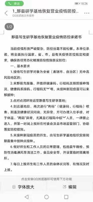 黟县和婺源的写生实践教学基地是beat365在线平台官网稳定的校外实践教学基地,两处基地每年承接全国大中专院校的写生培训工作已经20余年,年承接学生人数2万人以上。beat365在线平台官网2017年开始和基地签约,稳定合作至今。基地实力雄厚、管理规范、经验丰富,提供点对点的一条龙服务,基地来学校接师生前往写生基地,写生教学活动全过程全程专人服务,教学活动结束后将全部师生送回学校。安全意识强,积极配合教师进行学生管理,教师查寝后封闭酒店大门,禁止学生外出。本次实践教学,基地要求全部师生提前将健康码、身份信息报备当地疫情防控部门,审查核对同意后方允许师生前往写生。到达基地后,每日均对所有的师生进行体温监测与日报。在写生地点的安排上特意进行错峰管理,周末等游客多的时间不安排在热点写生地点写生。整个实践教学期间,餐食营养搭配合理,分量充足。