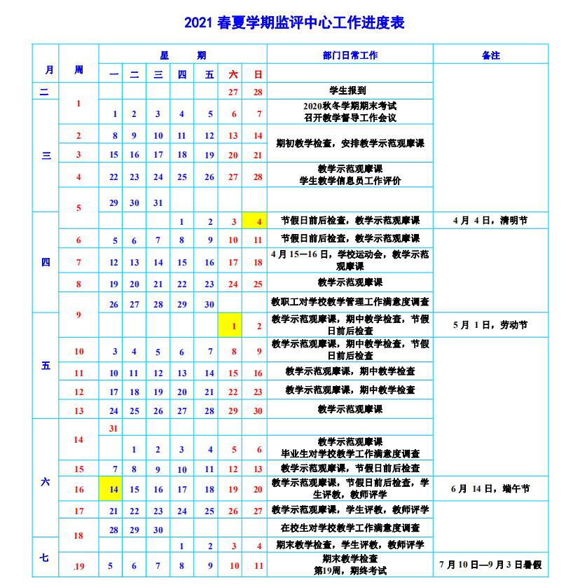 2021 春夏学期监评中心工作进度表