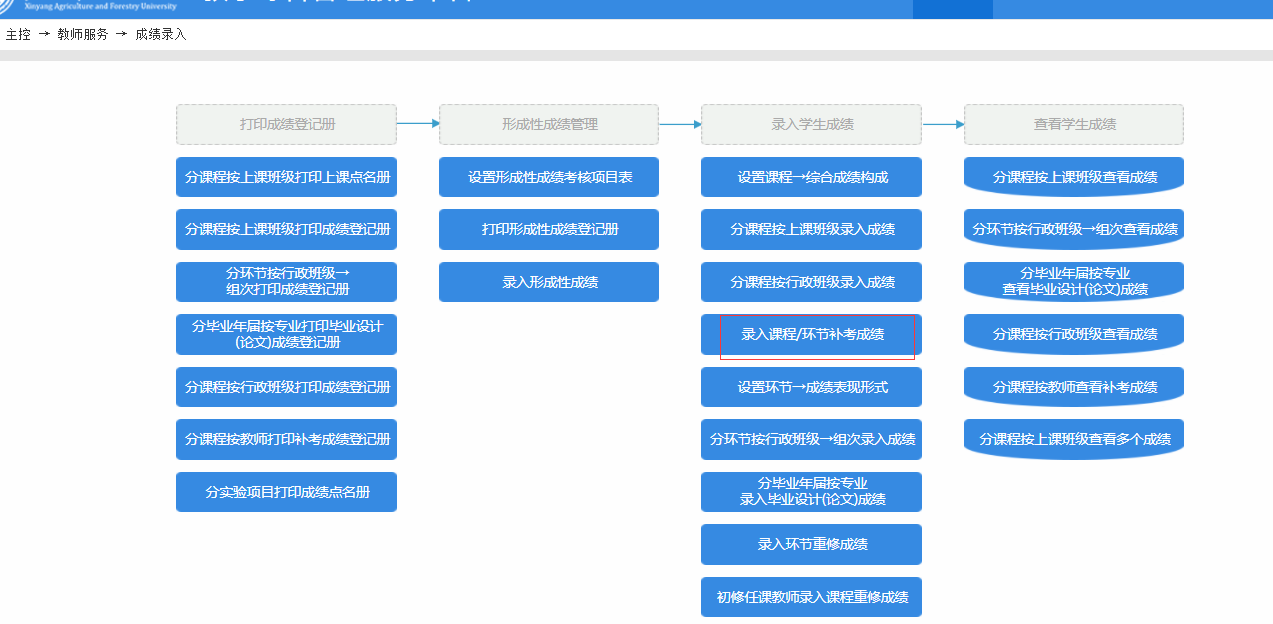 5.补考成绩请于3月22日前录入教务系统(补考成绩有时间节点,录入人为任课教师,界面见下图)。