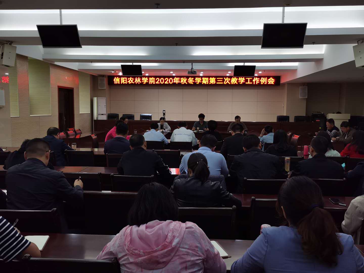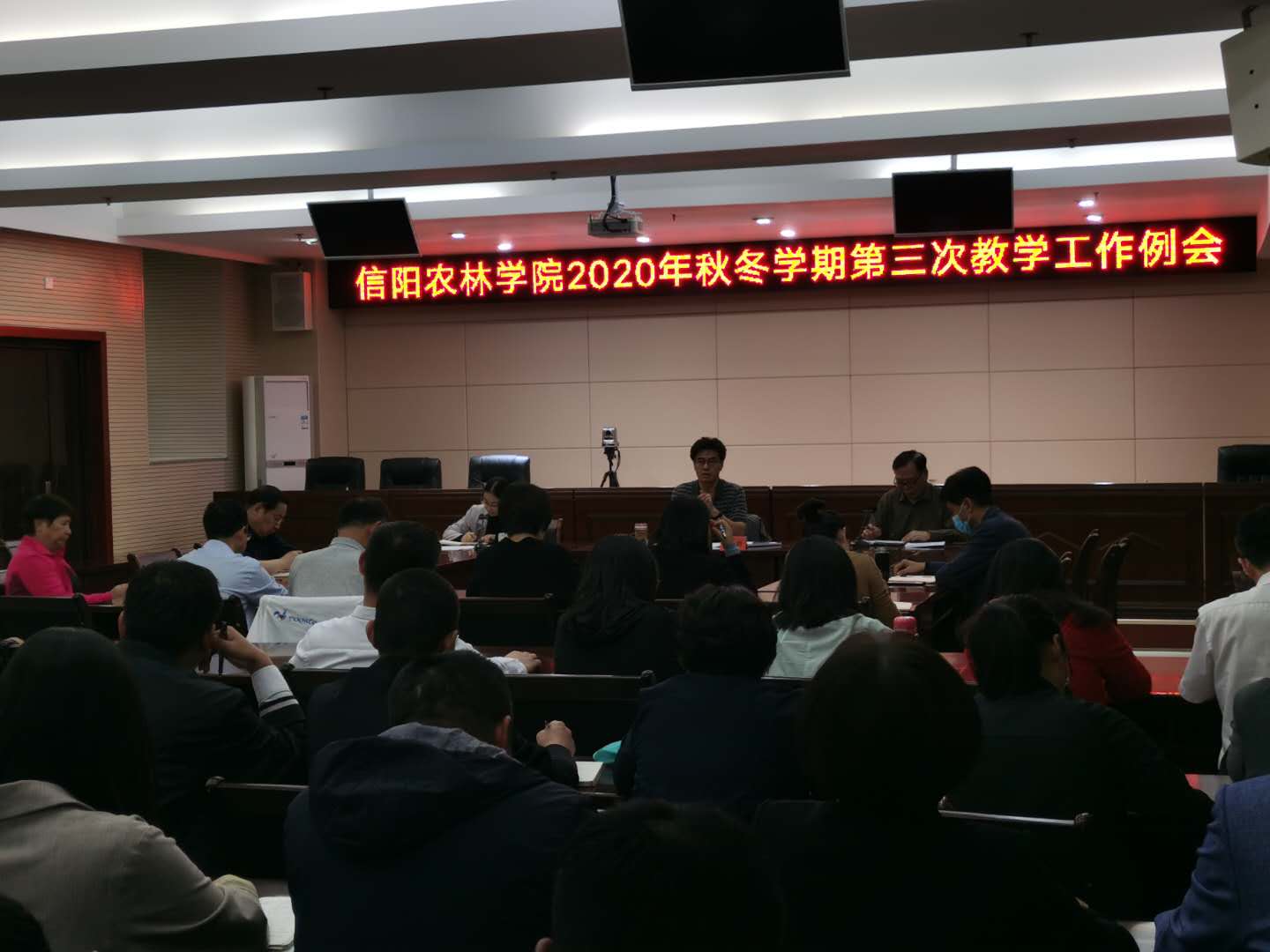2020年9月22日下午,在行政楼第一会议室学校召开2020年秋冬学期第三次教学工作例会。副校长赵一鹏出席会议,各教学单位院长(主任)、副院长(副主任)、教学秘书,教务处、监评中心全体人员参加会议。会议由教务处处长王学增主持。