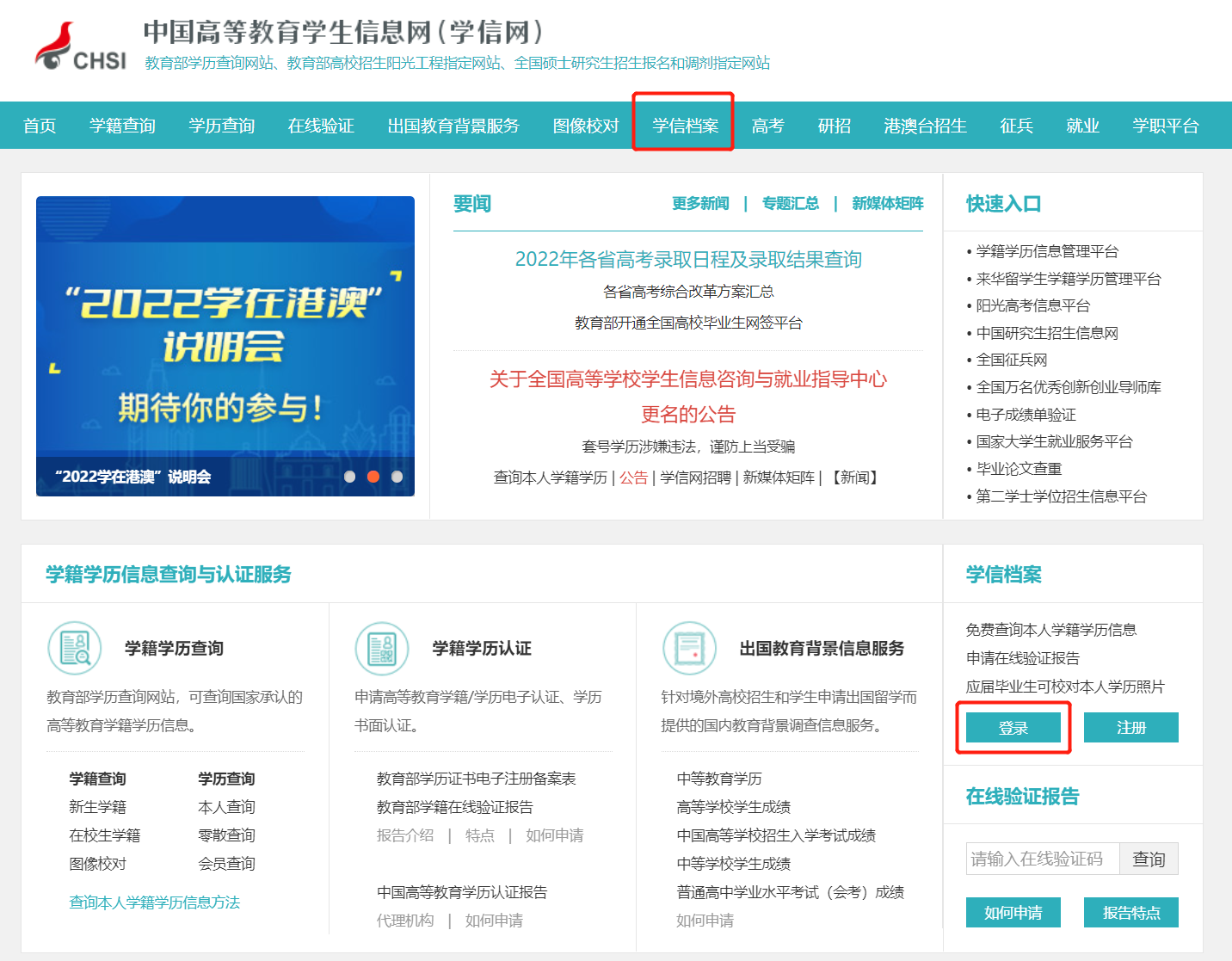①登录学信网学信档案