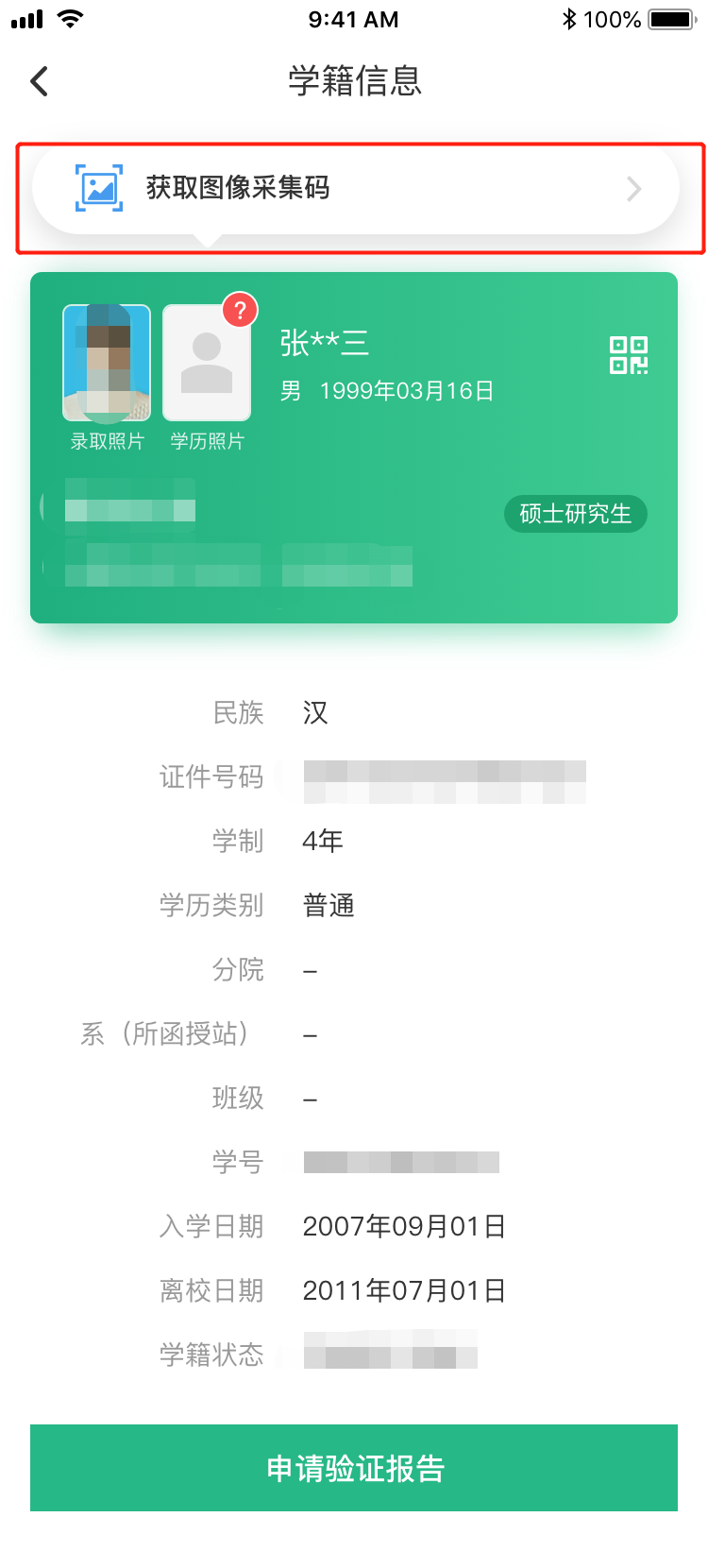 教师答:凡是具有学籍的在校生,在毕业前一律要参加图像采集。