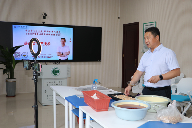 近几年因受疫情影响,该校学生无法及时到学校参加面授课,线上直播教学逐渐受到学生欢迎,该校继续教育学院副院长岳宝华介绍。“用网络‘e线牵’的方式拉近师生距离,为学生送上‘知识大餐’、为他们带来最新的农业知识和技术”。