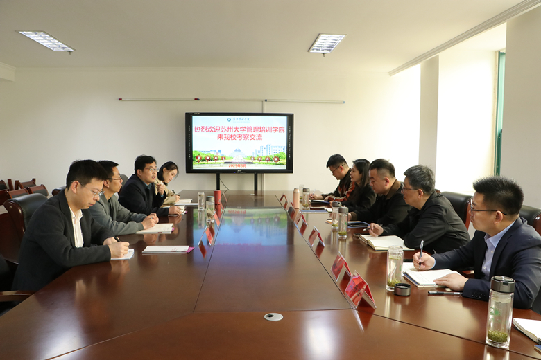 3月27日,苏州大学管理培训学院副院长沈黔一行六人来我院考察交流,双方围绕校际合作、继续教育资源共享、赋能乡村振兴等主题展开深入探讨。学院班子成员岳宝华、叶兆伟、马英及相关科室负责人参加座谈。