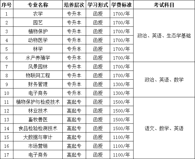 函授理工类: 专科1500元/年, 本科1700元/年;